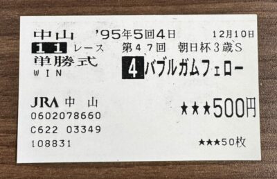 その朝日杯3歳ステークスのバブルガムフェロー単勝馬券が私の手元に残っていました。2025年11月20日、脳出血からちょうど5年の記念日(?)に、古本の元主と私の歴史、1995年12月10日が30年後に不思議な形で繋がりました。何があっても健やかに生き続けることが大事ですね。